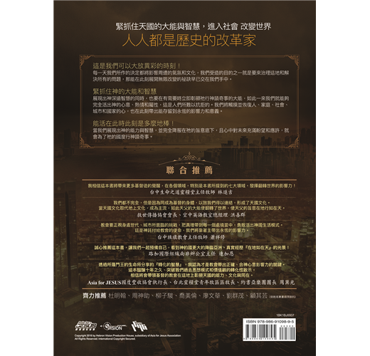 名人推薦:我相信這本書將帶來更多基督徒的覺醒,在各個領域,特別是本書所提到的七大領域,發揮翻轉世界的影響力!-----台中生命之道靈糧堂主任牧師 林進吉