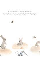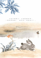 小兔子沿著河岸漫步,陶醉在身旁的簇簇花叢中。突然,牠聽見河裡傳來「噗通!」一聲巨響。小兔子嚇壞了,立刻拔腿疾奔,一邊高聲嚷嚷:「救命啊!噗通來了!」