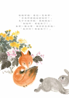 牠跑呀跑,遇見一隻狐狸。狐狸問牠:「你為什麼跑這麼快呀?」兔子不敢停歇,邊跑邊說:「快逃啊,噗通來了!」狐狸還沒搞清楚狀況,也跟著小兔子一起倉皇奔逃,一面高聲大喊:「救命啊!噗通來了!」