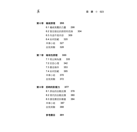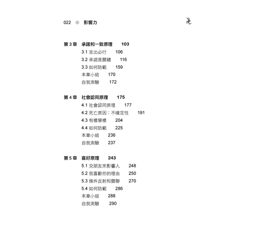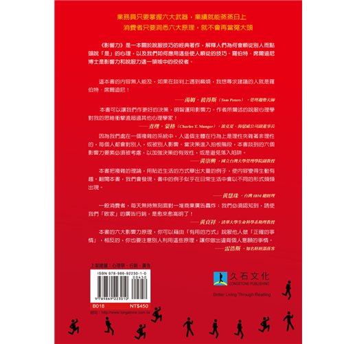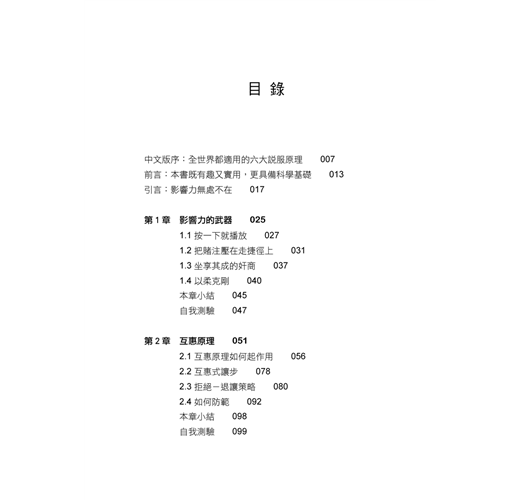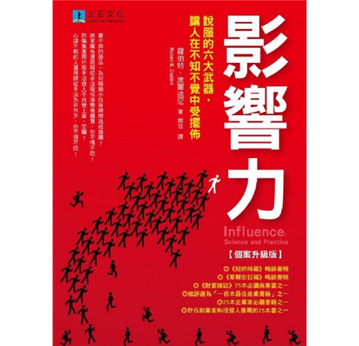 本書的六大影響力原理,你可以藉由『有用的方式』說服他人做『正確的事情』,相反的,你也要注意別人利用這些原理,讓你做出違背個人意願的事情。