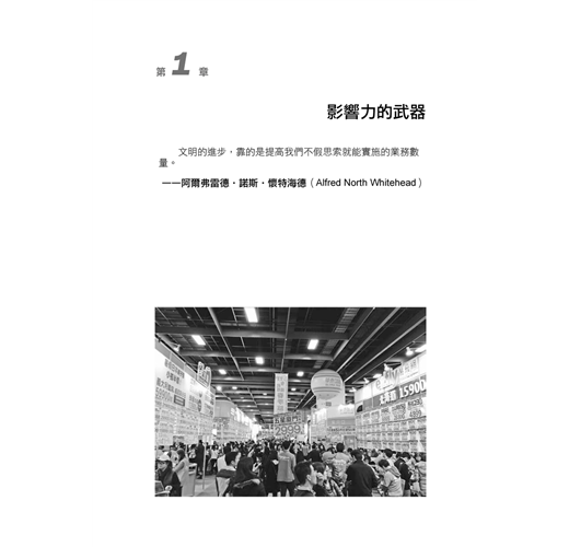 因為我們處在一個複雜的系統中,人這個主體在行為上是理性夾雜著非理性的,每個人都會對別人,或被別人影響。當決策進入拍板階段,本書談到的六個影響力要素必須被考慮,以加強決...