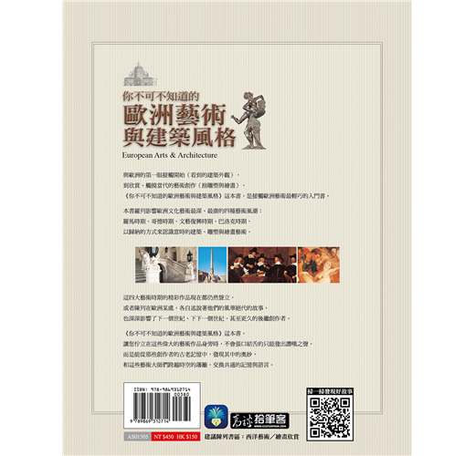 歐洲藝術的美,蘊藏於建築、雕刻與繪畫中,本書帶你從四種不同的風格──羅馬式、哥德式、文藝復興和巴洛克風格,看懂她的俐落和剛毅、沈穩與靜謐、神聖與華麗、婉約與浪漫。