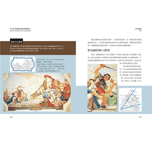本書將影響歐洲文化藝術最深、最廣的四種藝術風格——羅馬時期、哥德時期、文藝復興時期、巴洛克時期,以圖解和歸納的方式呈現,由淺入深,引領想一探歐洲美之所本的讀者,跨越時空的藩籬,和藝術創作者產生共鳴,看穿建築、雕塑與繪畫藝術中的設計與風格。