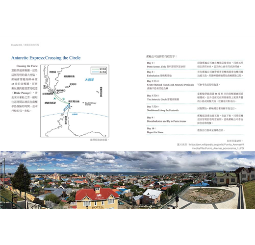 相較於北極海,隻身前往南極大陸的難度高多了。撇開昂貴的旅費不談,在享受最終段的南極旅遊之前,有多少關卡得破?該如何破?這一路的奔波可能會有什麼狀況?如果中間出差錯時該怎麼辦?作者利用旅遊全記錄的方式,不著痕跡的將自己的經驗化成南極自助旅行指南。