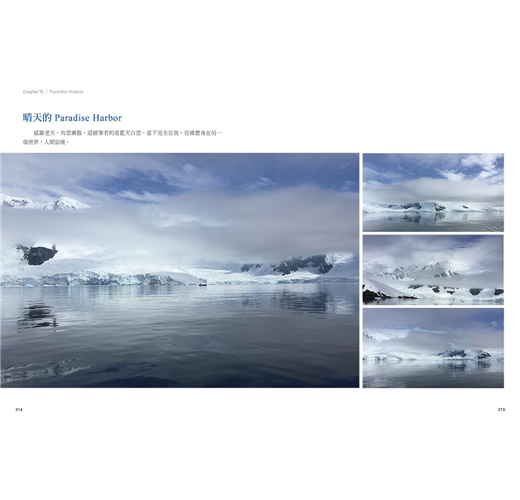 因為重點是一個人;因為地點是世界的盡頭,尤其是杳無人煙的南極大陸;因為自助能省下不貲的旅費;因為旅程中往往會有問題在已經料想過的小環節處冒出來:明明已經再三確認的機場接機服務,為何卻苦等無人?為什麼為避免開車發生意外而事先買了全險,最後荷包仍免不了大失血?