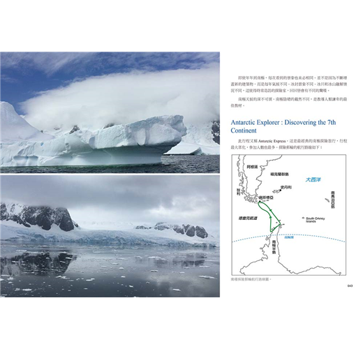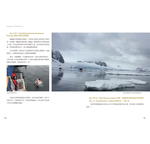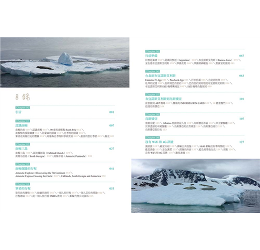 行程全攻略;南極、北極全攻略;一個人旅行的際遇與所思所想。