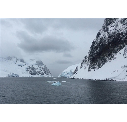 Lemaire峽灣長度約9公里,最寬約1,600公尺,海面布滿浮冰。