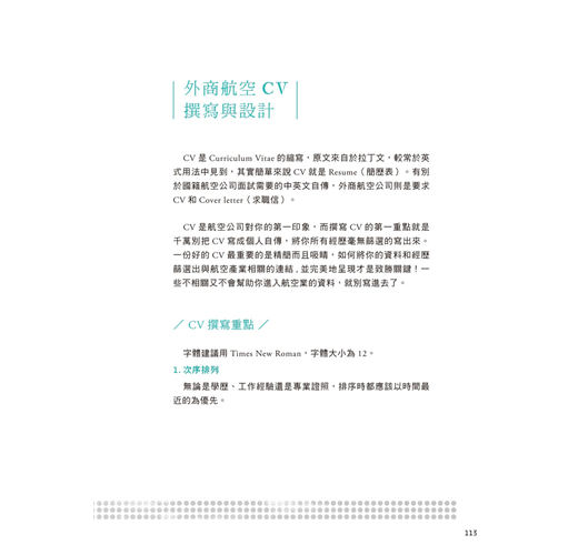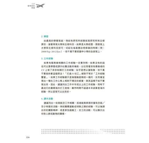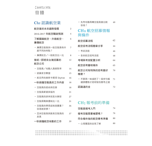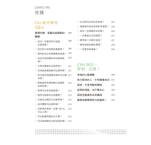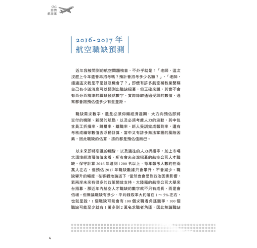 這一本書就是你追求成功的過程中,幫助你的那本寶典,關於航空考試的許多問題,都能在這裡得到解答。你/妳準備好了嗎?如果你/妳今天翻開了這本書,代表我們未來很快會在空中相遇。我期待著與你/妳一同分享成功遨翔天際的感動故事。