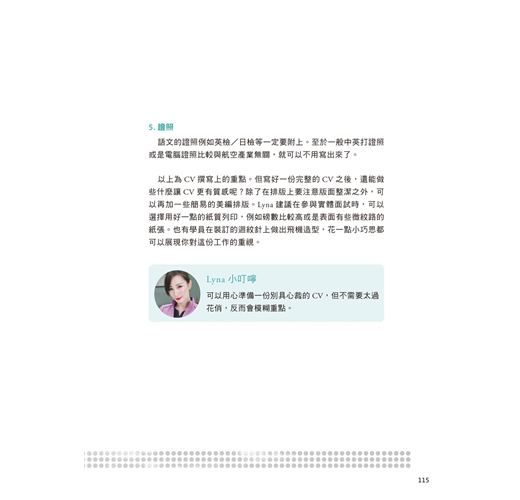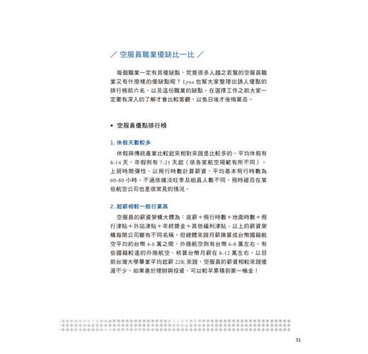 當機會來臨時,你準備好了嗎?Lyna的這本書正是一個當你覺得夢想遙不可及,在追尋航空夢這條路上迷失了方向時,那個令你重拾信心、不輕言放棄,並指引你準備應試方向的明燈。