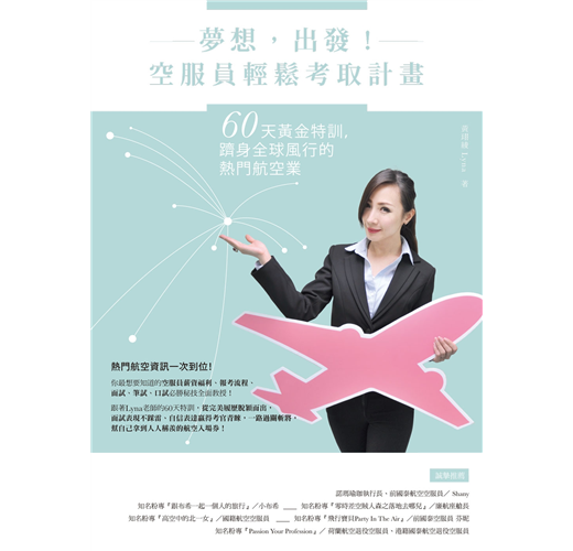 鼓勵任何有空服夢的人,不管年齡,身高,學歷等條件,一定要放膽去挑戰!強力推薦閱讀Lyna的這本書籍,開始起身為你的「夢想,出發」。創造一個專屬你的飛行故事,就從本書開始!