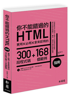 本書精選300多段的HTML程式碼,從基礎的HTML元素講起,在淺白的說明文字中附有簡單且直搗主題的實例演練,包含建立HTML文件、頭部meta元素、文字、圖像、連結、多媒體等網頁元素,以及頁面布局、表格、表單、框架等結構設計,更進一步說明Canvas、地理位置、本機儲存、應用程式暫存的應用方式,旨在讓讀者快速設計出簡潔、高效能、通用的網頁結構,讓你的網頁不論在哪種瀏覽器上,都能完美呈現。