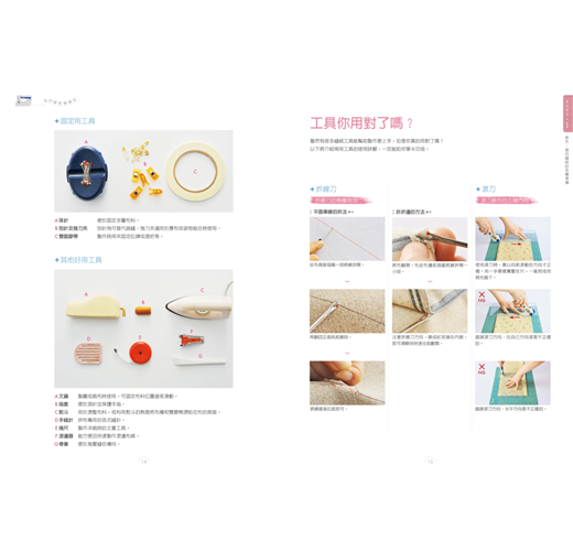 在開始玩布之前,首先來看看要準備哪些讓裁縫更加得心應手的工具;拆線刀、滾刀、縫份尺、尺寸板…,用對了道具就能讓布作更上手。緊接著開始認識縫紉機的構造,原來壓布腳的種類有這麼多?穿針引線也有順序?遇到不同的布料要跟著換適合的針線……,超過800張的圖文解說,點出縫紉機各種基本到進階的操作技巧、配件知識,初學者都能輕鬆理解。當熟悉縫紉機的使用方法後,就跟著葉老師進一步善用縫紉機的好處,做出各種想要的生活布作吧,讓縫紉機變成你的DIY好朋友!