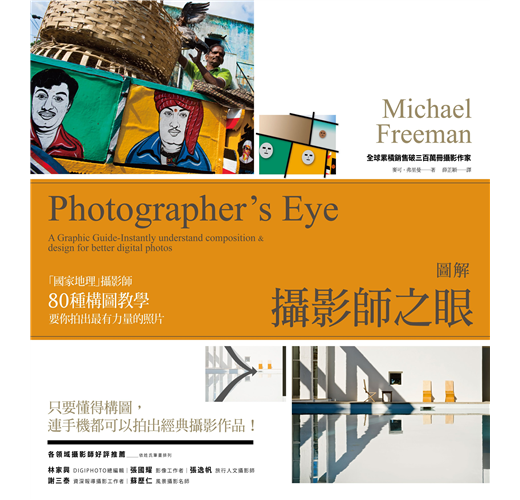 「國家地理」雜誌攝影師、攝影暢銷書作者麥可.弗里曼以「一看就懂」的圖解方式,剖析攝影中最重要的藝術手法──構圖。書中收錄最熱門的攝影類型,包括風景攝影、街頭攝影、人文攝影等,搭配大量3D彩色示意圖,告訴你每一張震撼人心的作品背後所蘊藏的構圖力量。