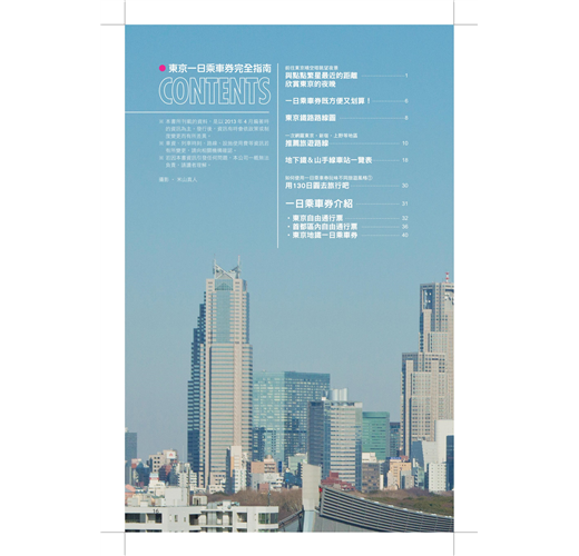 《東京一日乘車券完全攻略》為東京自助旅行者必備的旅遊工具書,書中介紹目前通行東京23區各種一日券,包括東京地下鐵(東京メトロ)一日券、都營地下鐵一日券、東京自由通行一日券、百合海鷗號一日券、臨海線一日券、都營巴士一日券等等,完整收錄在東京搭乘大眾交通工具一定會用到的乘車券。東京路線網猶如天羅地網,本書在手、東京任我遊。