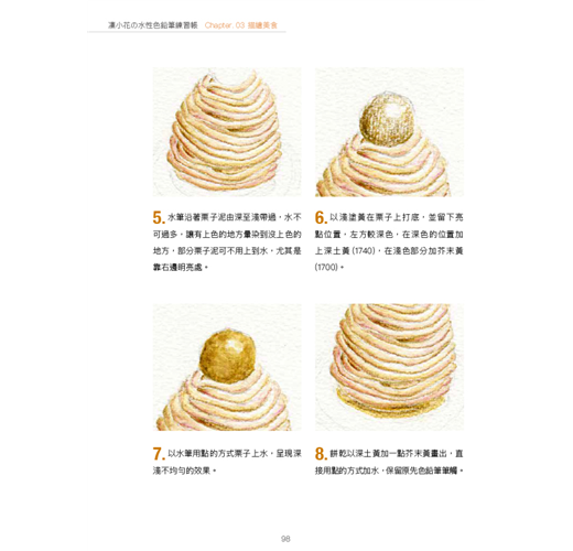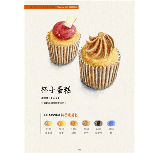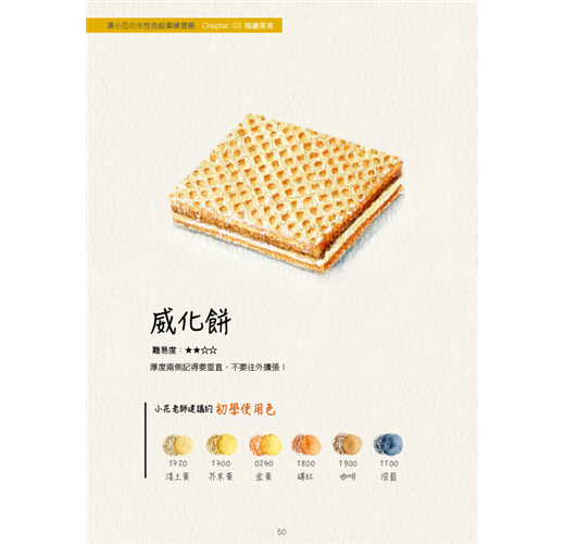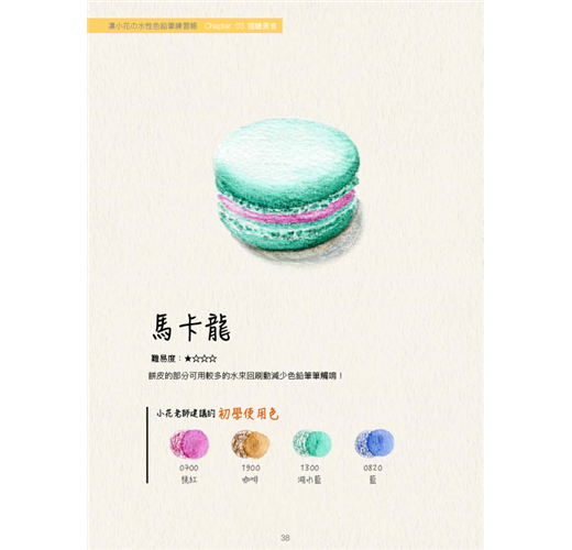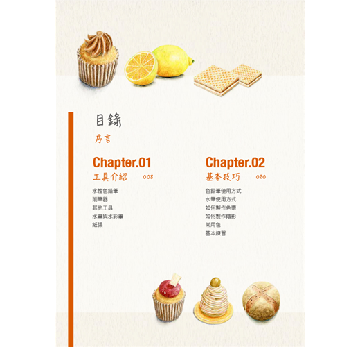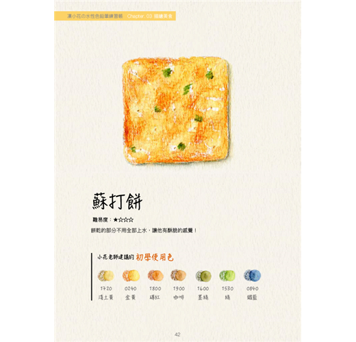 在描繪美食的單元將詳細分解各種水果、麵包、甜點、蛋糕、食物的畫法,一步一步教你如何將常見的生活美食置入畫布中,細膩親切的教學方式讓你不管身在何處,即使旅行也把小花老師帶著走!