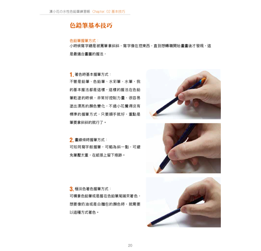 在基本技巧的單元將介紹色鉛筆基礎技巧、水筆技巧、還有常用效果的製作方式,小花老師將公開多年的畫技經驗於此書一筆一劃地完整呈現!