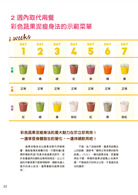 2.瘦身真健康:將蔬果分為綠、紅、橘、黃、紫、粉紅、黑7種顏色,介紹代表食材與食譜。只要將同色的蔬果打成蔬果泥,就能解決各種健康問題。即便沒有相關食材知識,也能輕鬆減肥成功。