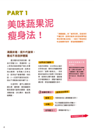 4.瘦身有策略:詳細介紹蔬果泥減肥法進行時間與有效方式,循序漸進。減肥初學者與不愛吃蔬果的人皆可從本書找到適合自己的最佳策略。