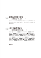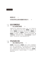 緒論/★一、界定目的/【關鍵做法1】 掌握你的時刻/【關鍵做法2】 選擇一個目的/【關鍵做法3】 走得慢,才能走得快/★二、融合多元視野/【關鍵做法1】 組成夢幻團隊/【關鍵做法2】 創造共同的平台/【關鍵做法3】 計畫燃燒/★三、建立問題框架/【關鍵做法1】 擴展(而非對抗)與會者的心態/【關鍵做法2】 在不同的框框內思考/【關鍵做法3】 選擇一些主要的框架/★四、融合會場環境/【關鍵做法1】 創造你的空間/【關鍵做法2】 運用視覺訊息/【關鍵做法3】 照顧小細節/★五、創造體驗/【關鍵做法1】 發現,而不是告知/【關鍵做法2】 全心全意投入/【關鍵做法3】 創造敘述的弧線