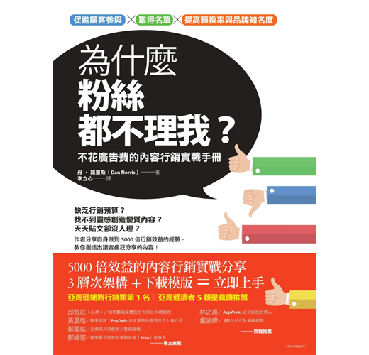 「諾里斯善用內容行銷締造的佳績讓人難以置信!本書透露他如何做到,並且教你複製成功。」──亞當‧富蘭克林(Adam Franklin),澳洲網路策略公司Bluewire Media共同創辦人