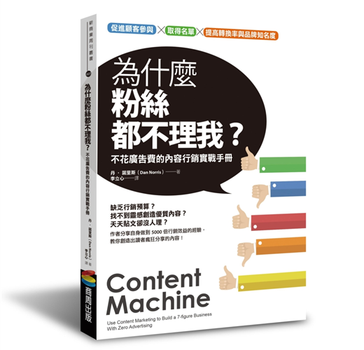 本書是諾里斯的第二本著作,內容闡述他如何善用內容行銷策略創造百萬營收,並且透過自動化、權責下放、建立內容團隊將內容行銷規模化。
