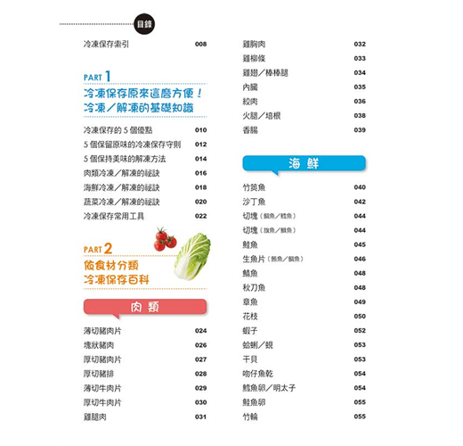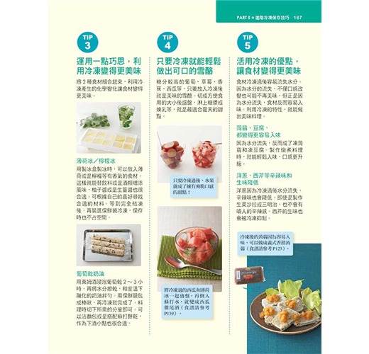 5個保持美味的解凍方法、冷凍庫空間100%利用技巧、保留美味的冷凍5 大祕技、冷凍保存Q&A、活用市售冷凍產品的方法,一次解決你對於冷凍與解凍的疑難雜症,掌握實用祕訣,終結冷凍庫化石命運!