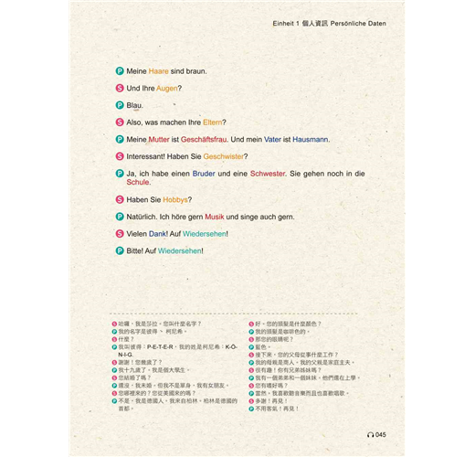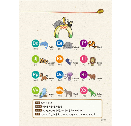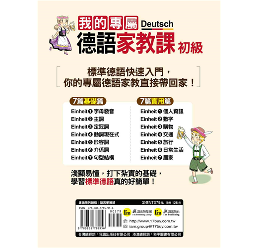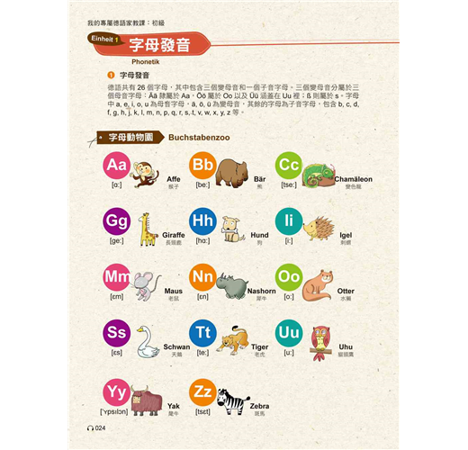 1,自修課本:本書由二個德國語言教學博士親自撰寫及審訂,內容完全符合德語學習者需求。從基礎字母A-Z、變母音,到實用字彙及基礎會話,聽、說、讀、寫與發音一次搞定。且每一章都提供練習題,讓讀者邊學邊演練。