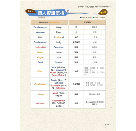 Teil 1 讀 - 個人資訊表格