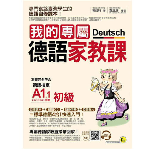 本書《我的專屬德語家教課:初級》的目的在減輕自學者的負擔,藉由簡單的字彙與句型,練習德語聽、說、讀、寫、譯的基礎能力,本書特別強調現在式的練習,讓初學者可快速達到溝通的目的。重要的是,本書依據不同的主題設計出七個章節,讓自學者可以迅速認識德語系國家的文化風情。