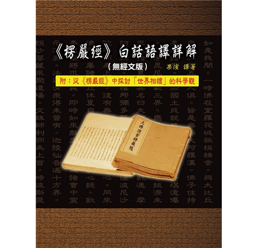本書乃從《楞嚴經原文暨白話語譯之研究(全彩版)》一書中「獨立」出「純白話語譯」的部份,後面再附上一篇〈從《楞嚴經》中探討「世界相續」的科學觀〉的論文資料。適合介紹給從不認識《楞嚴經》的人閱讀,內容淺顯易懂,可以讓您快速進入《楞嚴經》的精彩義理。全書共44萬5千字。