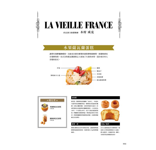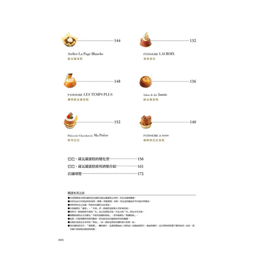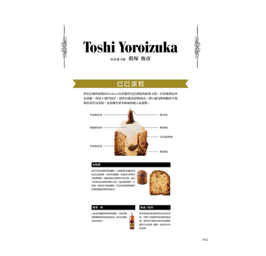 本書特別邀請35間知名店鋪的高人氣甜點師傅,公開其引以為傲的巴巴蘭姆酒蛋糕與薩瓦蘭蛋糕之材料、作法以及調味觀點,並以詳細豐富的圖片步驟,引領讀者們深入法式甜點的美妙世界!