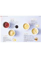 食譜分成四大類──「滿4個月~6個月」、「滿6個月~8個月」、「滿8個月~12個月」,「12個月以上」的離乳食點心,按月齡提供適合的季節性食材/製作濃度與顆粒大小、烹煮時間。還有提供加強免疫力、預防便祕、促進食慾等效果的各式配方。