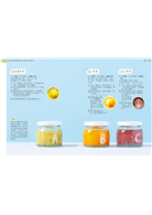 我們可以按照月齡、季節、營養價值來製作材料。而製作點心主要使用磨、攪拌等簡單的調理方式。會使用像是馬鈴薯、地瓜、南瓜、當季水果等材料作為營養點心的材料,由於含有碳水化合物及天然糖分,不僅供給寶寶足夠的熱量,還富含維他命和礦物質等營養。食譜的美味配方連沒有食慾的寶寳都能吃得開心。