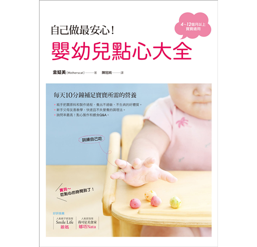 讀者心得3:「雖然關於離乳食的教學書有很多,裡面也會收錄幾篇可以當點心的內容,但要整本收錄離乳食點心教學的就比較不好找了。有了這本書之後,正在努力至少在周末時親手製作寶寶吃的點心。一開始我也是很好奇離乳食跟離乳食點心的差別在哪,後來就把它想成這本是離乳食點心用,所以材料比例也不同,就跟著製作了,特別是書中收錄的各種季節性食物,讓採買變得更方便了。」