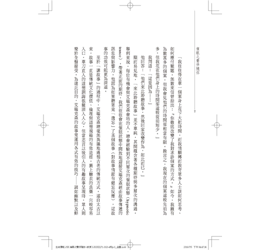 對於每一個願意從本身的工作中有所學習、有所採納的臨床醫師而言,本書提供了豐富的內容……這本書幫助我們分享了艾瑞克森令人嘆為觀止的洞察力。