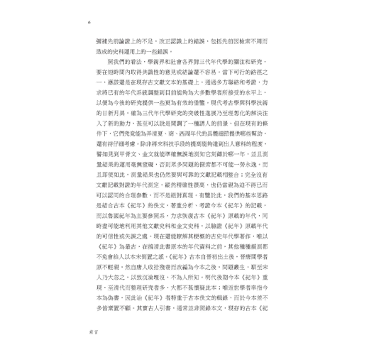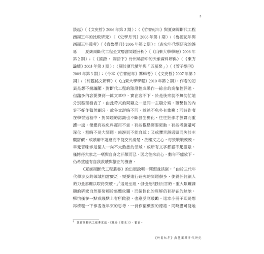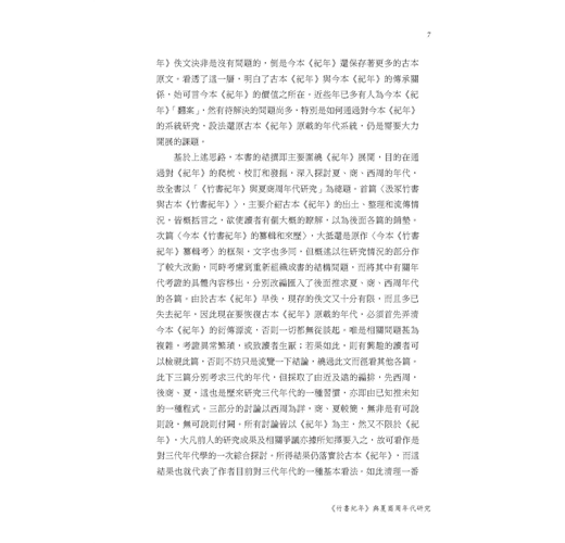 首篇〈汲塚竹書與古本《竹書紀年》〉,主要介紹古本《紀年》的出土、整理和流傳情況,皆概括言之,欲使讀者有個大概的瞭解,以為後面各篇的鋪墊。