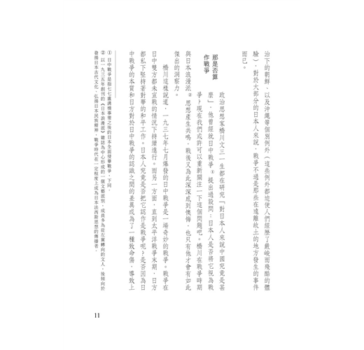 政治思想家橋川文三一生都在研究「對日本人來說中國究竟是甚麼」,他曾經就日中戰爭提出過設問:日本人是否將它視為戰爭?現在我們或許可以重新關注一下這個問題吧。橋川在戰爭時期與日本浪漫派思想產生共鳴,戰後又為此深深感到懊悔,也只有他才會有如此傑出的洞察力。