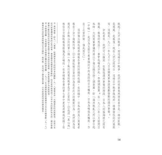 這份備忘錄也被李頓報告書的附錄所收錄。在附錄中,日本政府及工商業者報告了如下幾點內容:①中國抵制日貨的行為是非武力的敵對行為,我們認為這違反了非戰公約的第二條(為了執行政策的戰爭是不正當的);②我們「真心地」相信日方採取報復措施是正確的。在李頓報告書的第七章中更是清晰地記錄了在調查過程中日本的工商業者認為抵制日貨行為是「侵略行為,主張日本應該為報復此行為而採取軍事行動」等事實。