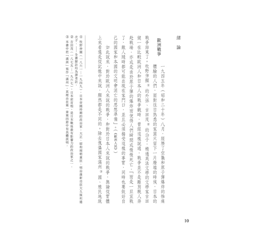 如此說來,對於歐洲人來說的戰爭,和對於日本人來說的戰爭,無論從實體上來看還是從記憶中來說,顯然都是不同的。除去傀儡國家滿州國、殖民地統治下的朝鮮、以及沖繩等個別例外(這些例外都迫使人們經歷了嚴峻而殘酷的體驗),對於大部分的日本人來說,戰爭不過是那些在遠離故土的地方發生的事件而已。