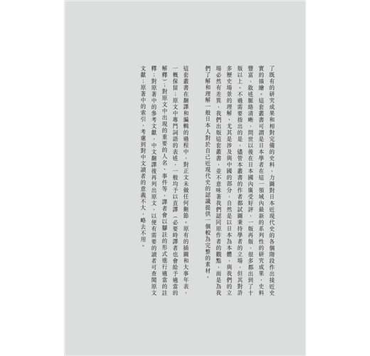 中國讀者對於與我們有著複雜情緣的鄰國日本,一直抱有高度的關注。尤其是進入近代以後,其發展軌跡與中國出現了明顯的差異—經歷了前近代國家向近現代的轉化、發展和崛起,對外的武力擴張並由此導致了戰敗。戰後的日本重新出發,社會政治體制發生了質的改變,在一九七○年代一躍而成為世界上的第二大經濟體,而在近年又出現了長期的經濟低迷,整個社會在沉悶中孕育著躁動與不安。對於這樣的一段近現代歷程,日本人自己是如何來描述的呢?對於自己的近現代史,他們又是如何來認識的呢?這是廣大中文圈讀者所關切並抱有相當興趣的。出於這樣的目的,我們選擇了日本岩波書店近年(二○○六—二○一○年)來以「岩波新書」的形式陸續推出的十卷本「日本近現代史」,聘請了一批在此領域上頗有造詣的學者將其譯成中文,推介給各位讀者。