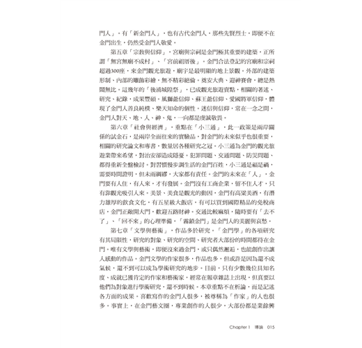 全方位彙整金門相關研究成果,是進一步研究金門的重要參考著作。