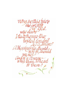 然而,出版這本集子是有個因緣──某個炎熱的下午,突然間一陣大雨,為了躲雨,我走進一家鋼筆店,主人馬上奉上一杯茶,親切地請我坐下來試試他的筆,他就是小品雅集的主人李台營。另外就是書林出版公司的蘇正隆送我一本書林出版的《魯拜集》。感謝他們的支持、鼓勵和書林出版部的辛勤努力,促成了這本英文花體字魯拜集的出版。