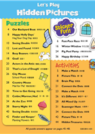 4.內容包含〈Puzzles〉、〈Sticker Fun!〉、〈Activities〉等多樣單元,家長可依照單元選擇主題內容,幫助孩子學習。全書內含多種尋寶主題,並增加找找看、畫一畫、動動腦、連連看等小遊戲,幫助孩子輕鬆融入喜愛的內容,配合生動的圖畫,提供更多的活動及故事讓小朋友探索、思考,訓練孩子專注力,同時強化語言表達及溝通,大大提升學習能力。