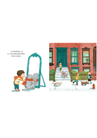 除此之外,《不歡迎大象》的故事簡單,但從封面開始就不停對讀者傳遞重要的暗示與訊息,是令人讚嘆的繪本作品!當讀者看著這本書的封面,雖然只能看見背對自己的小男孩和寵物象,但這樣的視角,同時讓讀者也變成他們,一起仰望門上不友善的標語、感同身受;翻開本書時,便能將自己投射在主角的身上,有更深刻的體會。