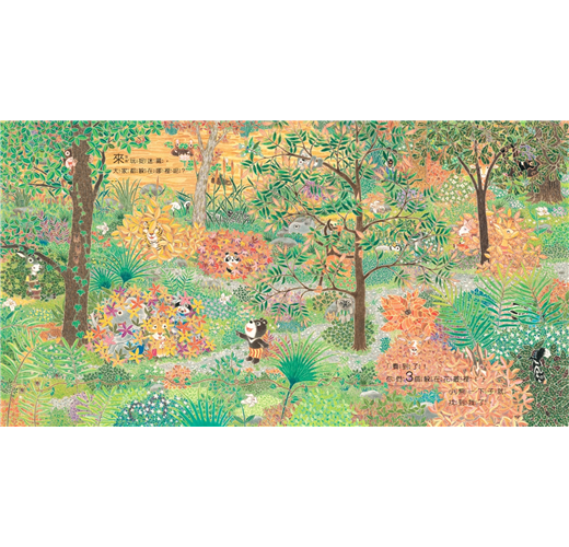 「玩捉迷藏的畫面一定要繁複又有看頭,讓讀者也可以跟著小熊一起找出躲在樹林中的其他32隻小動物。」