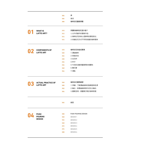 對於咖啡拉花中使用的所有材料、器具及技巧,都將會詳細的說明,