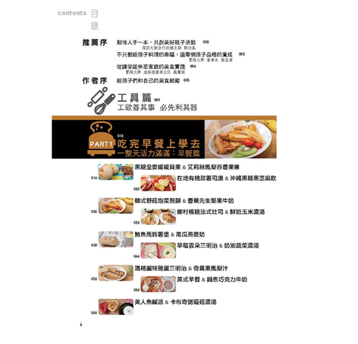 蕾蕾,真有你的!首見你因學而優,進而導,一步步回想當時在實踐大學的學成期間,俏皮、活潑、聰敏,見證了你在未來發展餐飲這一區塊的傑出表現,絕對是指日可待。果不然,看到你的章程大綱、圖譜列表、文字說明皆簡潔又有力,段落有序,祝福你,也祝福諸多喜好美食又苦無章法的普羅大眾,你們有幸了。阿基師在此真誠寫序中推薦,期待大家皆可人手一本,共同大手牽小手,共創美好的親子活動。