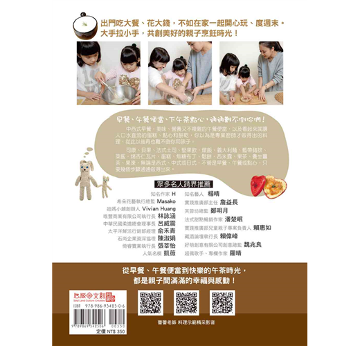 我將多年來的親子烹飪教學經驗集結成書,衷心期望在每個美好的親子時光裡,無論是親或子,都能從中獲得樂趣,並相互學習、成長,也期待這樣的烹飪時光,能成為親子間最美好的共同記憶。