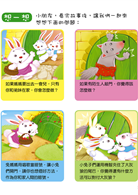 1. 故事以兔媽媽外出,大灰狼想要進兔子家們吃小兔子,小兔子想盡辦法不開門的劇情,讓孩子學習「小心陌生人」的重要。