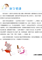 2. 進入故事前,本書以親子導讀提醒家長,在說故事或者帶領孩子閱讀此書時,可以引導孩子思考與延伸學習的方向,供家長參考。
